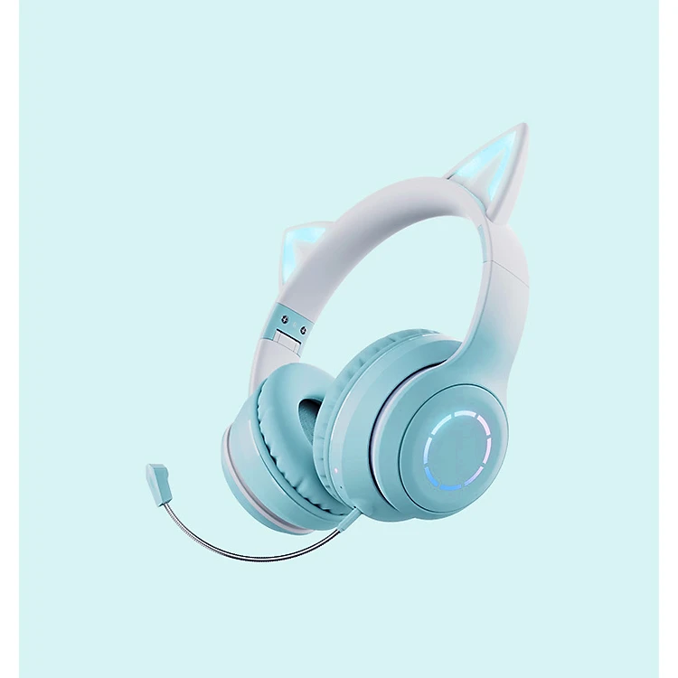 Tai nghe chụp tai bluetooth Cute Cat V3, tai nghe mèo không dây siêu dễ thương có đèn led đổi màu cực đẹp, tai mèo đáng yêu có mic đàm thoại cao cấp - Hàng Chính Hãng