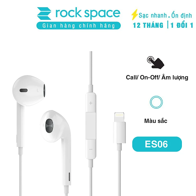 Tai nghe có dây nhét tai Rockspace ES06 kết nối bluetooth dành cho IP - Hàng chính hãng bảo hành 12 tháng