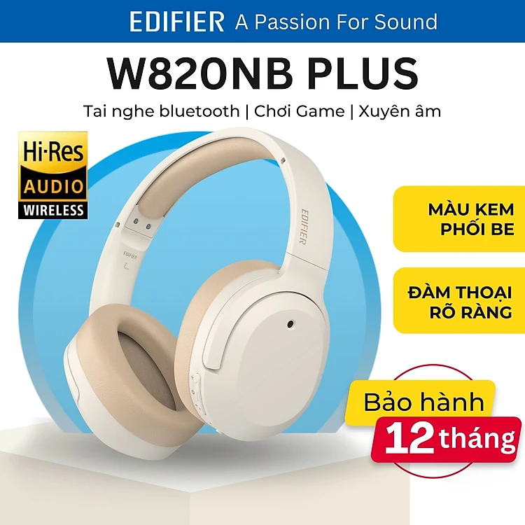 Tai nghe EDIFIER W820NB PLUS Bluetooth 5.0 | Chụp tai Chống ồn chủ động | Âm thanh chất lượng cao Hires | Chơi game - Hàng chính hãng