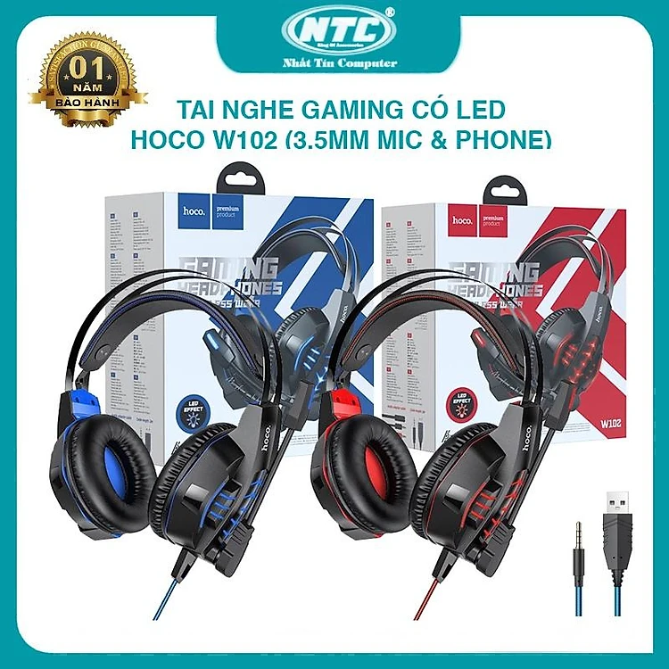 Tai nghe gaming dành cho Hoco W102 Painless wear led cực đẹp - tích hợp mic và phone trên 1 jack 3.5mm (2 màu tuỳ chọn) - Hàng Chính Hãng
