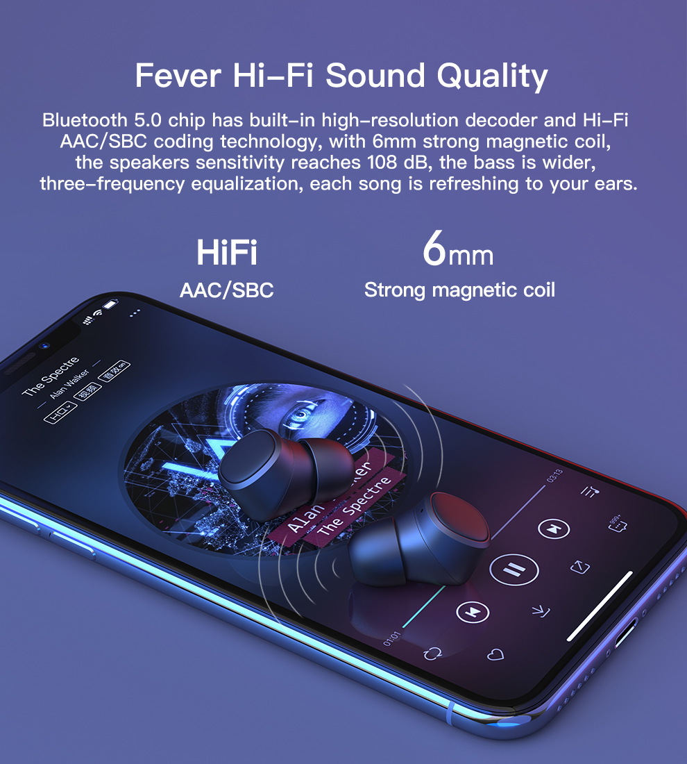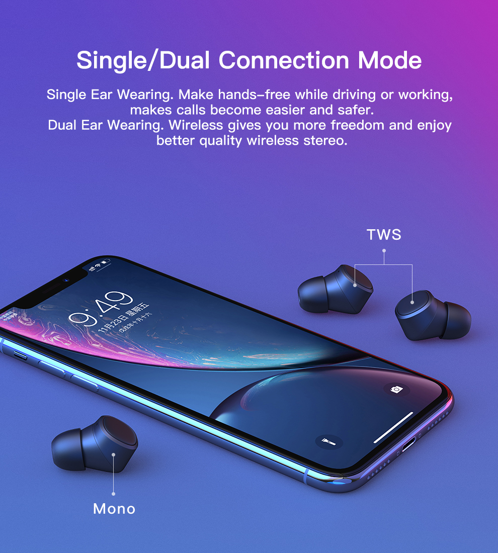 Sự dụng công nghệ Bluetooth mới nhất 5.0 cho phép thiết bị kết nối tự động và nhanh nhất với tất cả các thiết bị. Chỉ cần bạn tháo tai nghe ra khỏi hộp là bạn đã kết nối xong với điện thoại. Khi bỏ tai nghe trở lại hộp Tai nghe tự động ngắt với thiết bị và sạc lại cho tai nghe