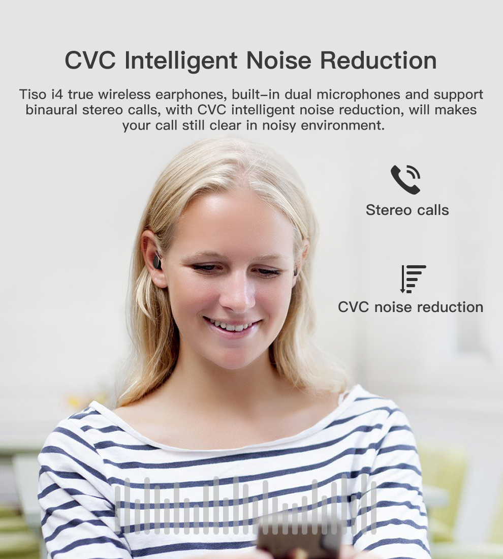 Tiso i4 là tai nghe TWS giá rẻ đầu tiên được trang bị công nghệ này. Sở hữu 2 mic để có thể tái tạo âm thanh nhằm tạo nên chất lượng cuộc gọi tốt hơn. Đây là một cải tiến đáng giá