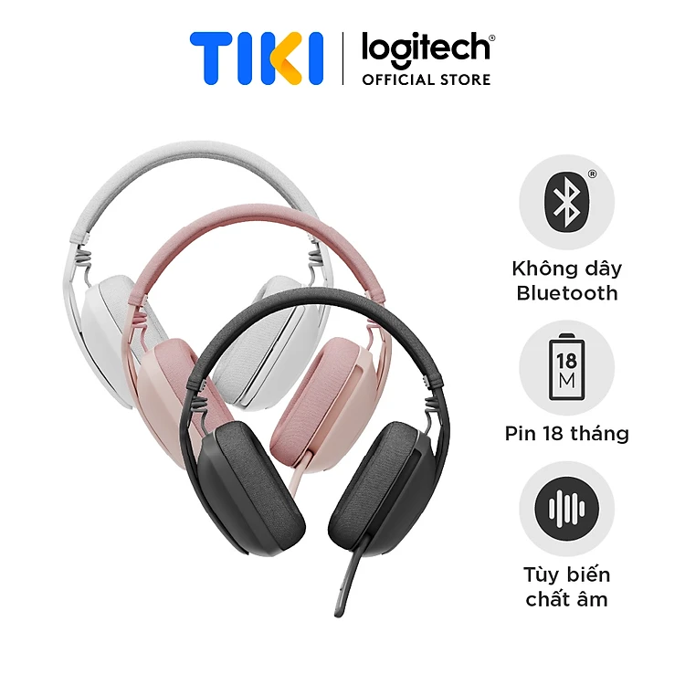 Tai nghe không dây Logitech Zone Vibe 100 nhẹ, với micrô khử tiếng ồn, Tai nghe Bluetooth Đa điểm Tiên tiến, Hoạt động với Teams, Google Meet, Zoom, Mac/PC - Hàng chính hãng