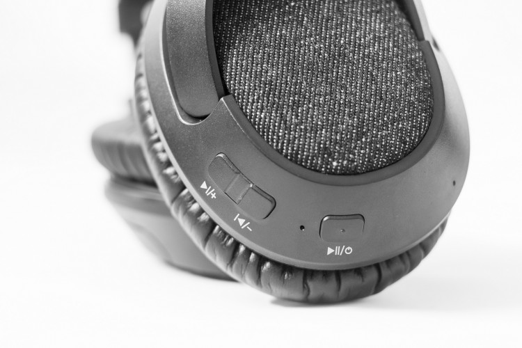 Bên tai trái có lỗ cắm jack tín hiệu 3,5mm và cổng sạc microUSB. Bên trái có các nút điều khiển như chơi/dừng kiêm nút nguồn, 2 nút chuyển bài kiêm chỉnh âm lượng. Phần đệm đầu cũng được bọc vải giống với ốp tai.