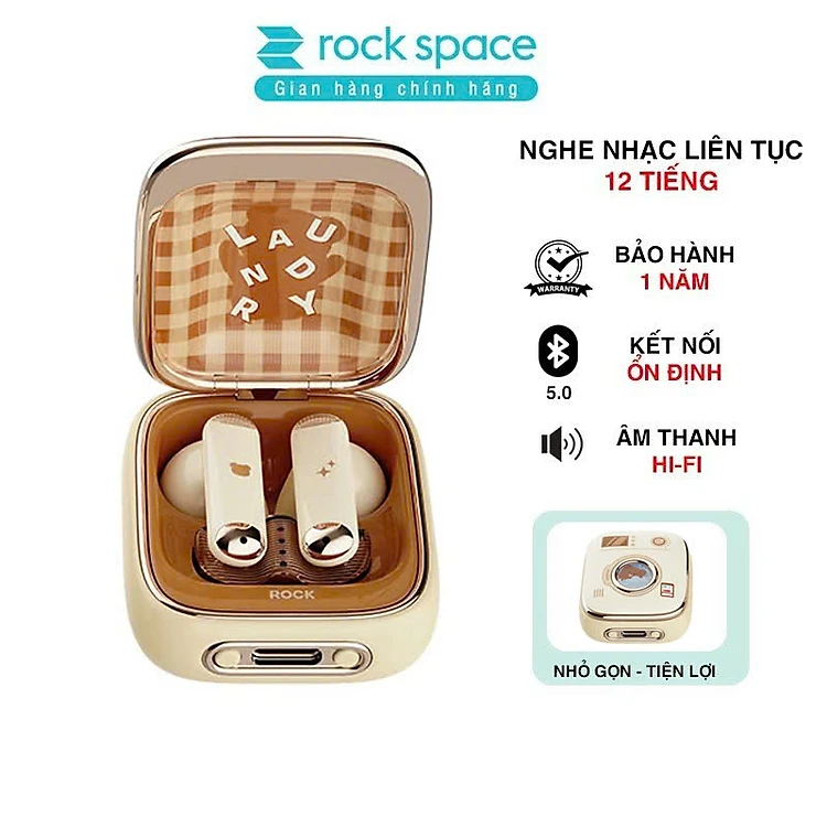 Tai nghe bluetooth Rock Retro nghe nhạc liên tục 12h - Hàng chính hãng bảo hành 1 năm