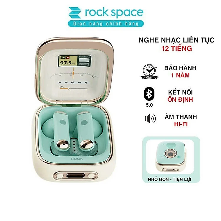 Tai nghe bluetooth Rock Retro nghe nhạc liên tục 12h - Hàng chính hãng bảo hành 1 năm