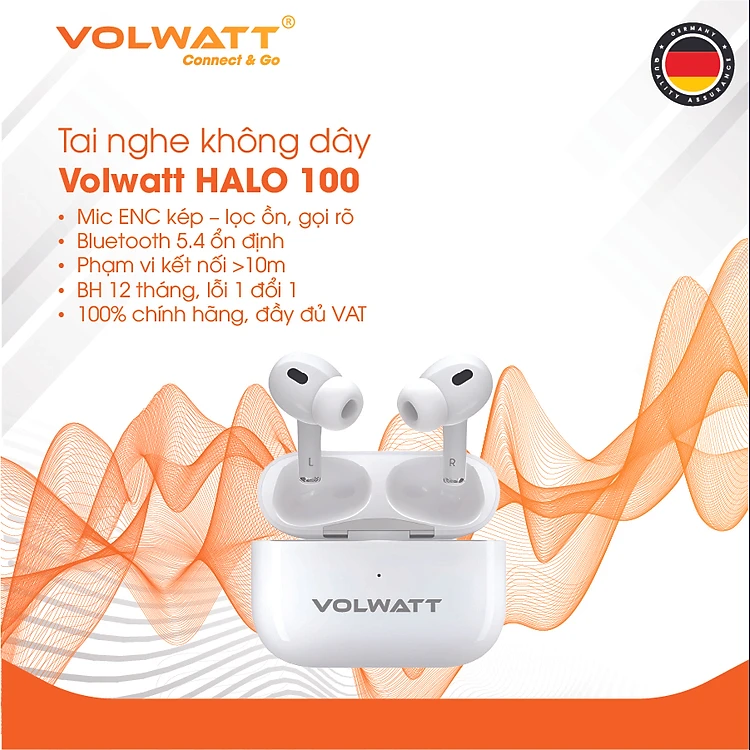 Tai nghe không dây Volwatt Halo 100 hàng chính hãng | TWS Bluetooth 5.4, Pin 50h, Type-C, BH 12 tháng