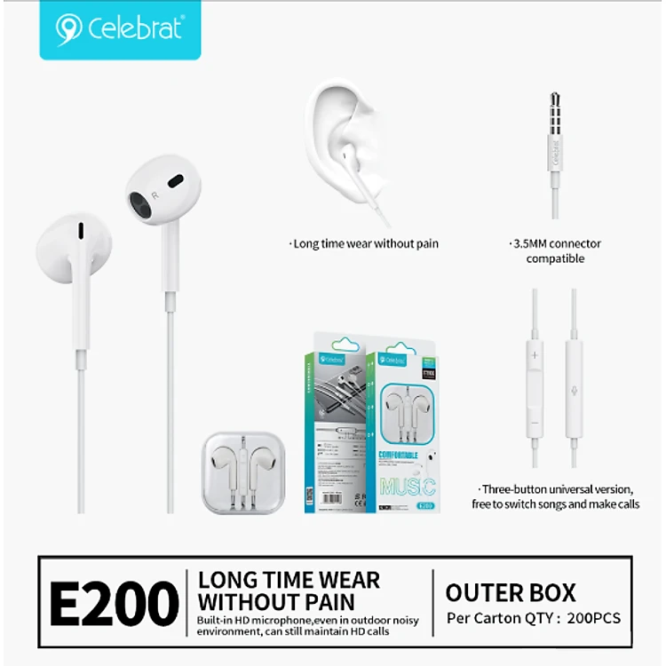 Tai nghe nhét tai có dây cổng 3.5mm (1 jack) Celebrat E200 có mic - Hàng chính hãng