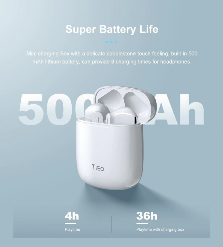 Thời lượng nghe nhạc và đàm thoại liên tục của Tai nghe TISO IX True Wireless lên tới 4 giờ đồng hồ và nâng tổng thời gian sử dụng của sản phẩm khi kết hợp với docks sạc lên tới 36 giờ chỉ với một lần sạc cho docks sạc mà thôi , một con số cũng khá ấn tượng để thoải mái sử dụng tai nghe trong khoảng 2-4 ngày dùng