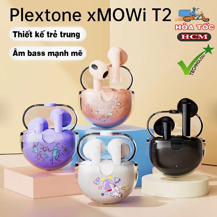 Tai nghe true wireless earbuds Plextone xMowi T2 - Điều khiển cảm ứng - Sạc Type C - Âm bass mạnh mẽ - Pin trâu - Mic khử ồn - Độ trễ thấp - Thiết kế đẹp - Hàng Chính Hãng