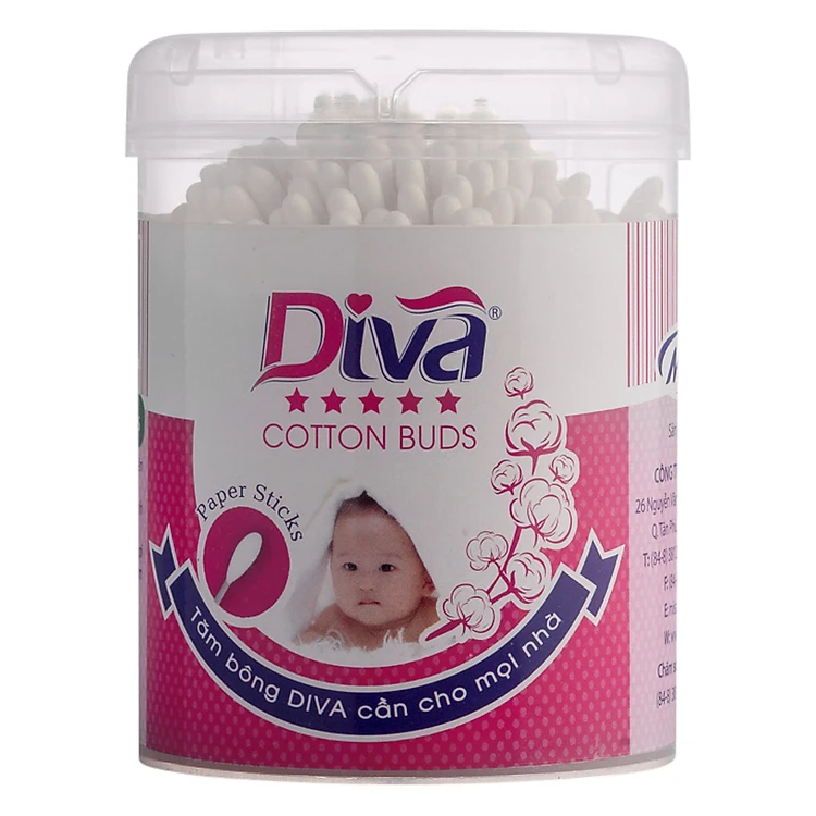 Tăm Bông Diva Thân Giấy Cho Bé Dạng Hộp Tròn - 200 Que Thân que thiết kế với kích thước nhỏ gọn, có độ đàn hồi tốt, bằng nhựa an toàn cho trẻ sơ sinh và trẻ nhỏ.