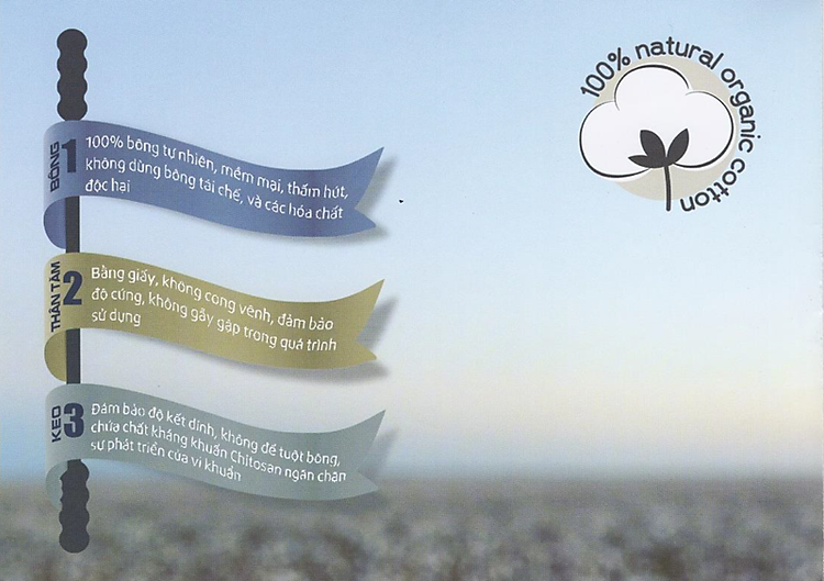 - Keo kháng khuẩn - Chitosan phủ quanh đầu bông, chống sự xâm nhập của vi khuẩn.