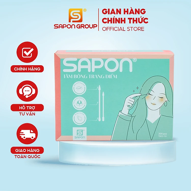 Tăm Bông Trang Điểm SAPON Thân Giấy – 200 Que/Hộp (TB03-112), Đầu Nhọn – Đầu Tròn, Không Rụng Sợi, Thấm Hút Tốt