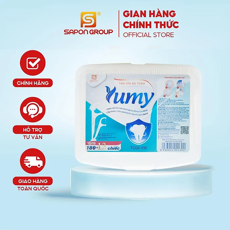 Tăm Chỉ Hộp Cấp YUMY Size L – Combo 12 Hộp x 192 Cây (TC02-139), Dùng Gia Đình, Chỉ Mịn, Không Tưa Sợi