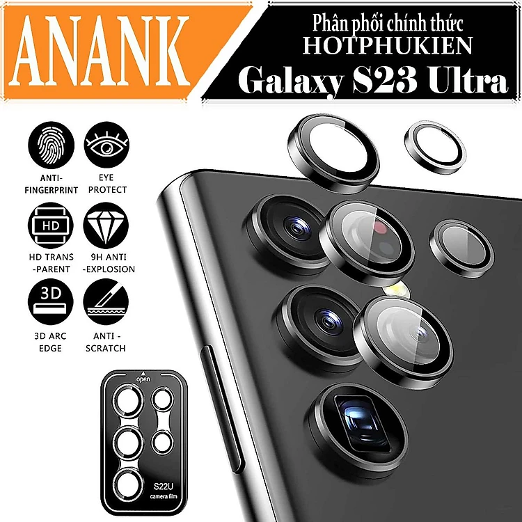 Tấm dán kính cường lực Camera cho Samsung Galaxy S23 Ultra hiệu ANANK - mặt kính AGC sắc nét với độ cứng 9H - hàng chính hãng
