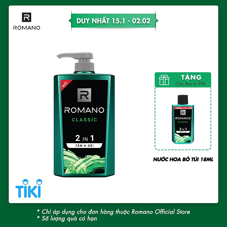 Tắm gội 2 trong 1 Romano Classic cổ điển lịch lãm phiên bản Deluxe nhanh chóng tiện dụng 650gr