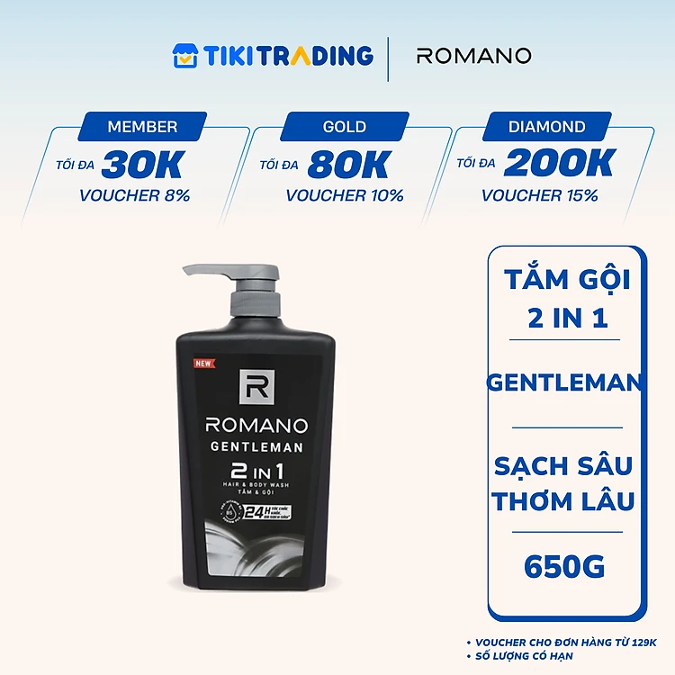 Tắm Gội 2 Trong 1 Romano Hương Nước Hoa Gentleman 650g 2in1 Hair & Body Wash