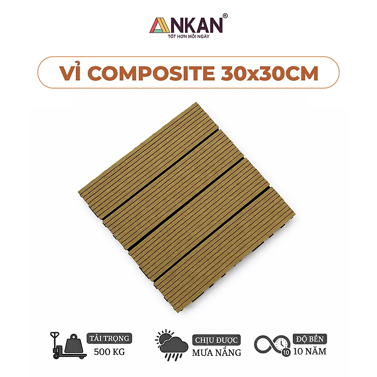 Tấm Lót Sàn Ban Công Composite Ngoài Trời Chống Trơn Chịu Nước Trang Trí Sân Vườn Hiện Đại – Dễ Lắp Đặt, Bền Màu, Không Mối Mọt