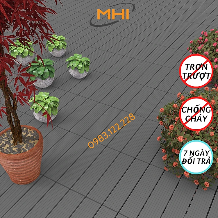 Tấm nhựa lót sàn MHI cao 2 cm, chuyên dụng cho ban công, bể bơi sân vườn PP - kích thước 30 cm x 30 cm x 2 cm