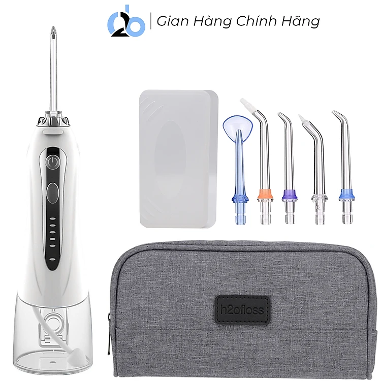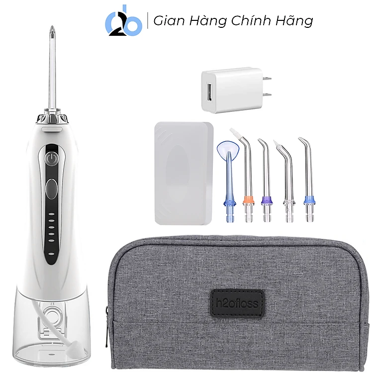 Tăm nước cầm tay H2ofloss HF-6. Tăm nước 5 chế độ, 5 đầu tăm đa chức năng, túi vải đựng máy, pin sử dụng tối đa 21 ngày, tặng kèm củ sạc nguồn thấp