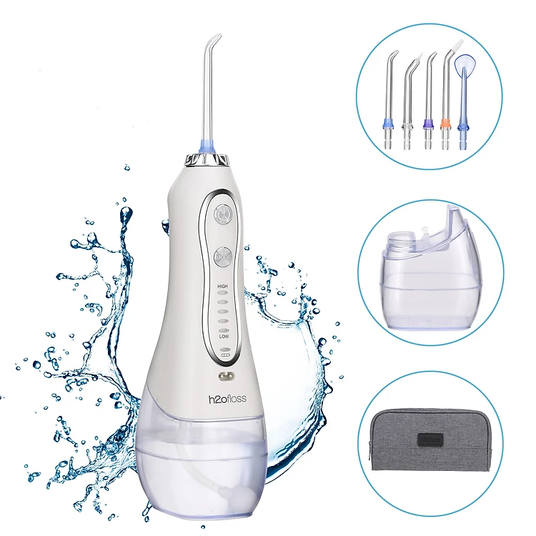 Tăm nước cầm tay H2ofloss HF-6. Tăm nước 5 chế độ, 5 đầu tăm đa chức năng, túi vải đựng máy, pin sử dụng tối đa 21 ngày, tặng kèm củ sạc nguồn thấp