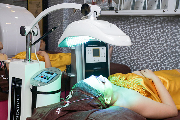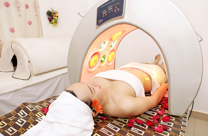Để giúp da có thể hấp thụ các tinh chất sau khi được đắp mặt nạ tái sinh da bạn sẽ được đưa vào máy ủ trắng, máy phi thuyền trong 20 phút. Các luồng ánh sáng hồng ngoại trong máy sẽ giúp các tinh chất này thẩm thấu đến từng tầng tế bào da, kích thích khả năng hấp thụ sản phẩm tối đa nhất.