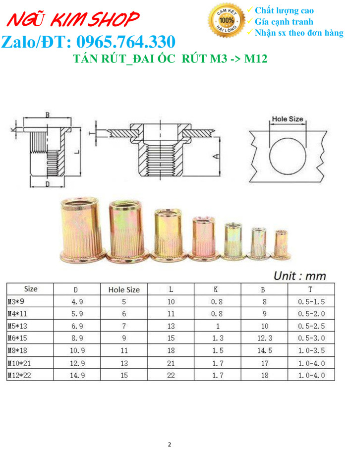TÁN RÚT_ ĐAI ỐC RÚT M3,M4,M5,M6,M8,M10,M12