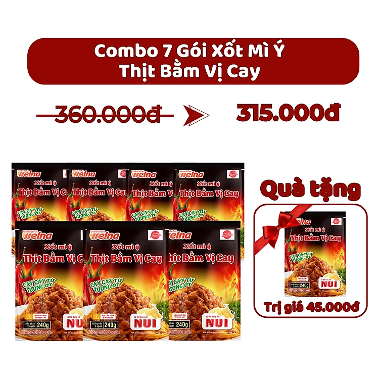 [Tặng 1 Gói] Combo 7 Gói Xốt Mì Ý Hương Vị Thịt Bằm Vị Cay - Nisshin Seifun Welna Shop