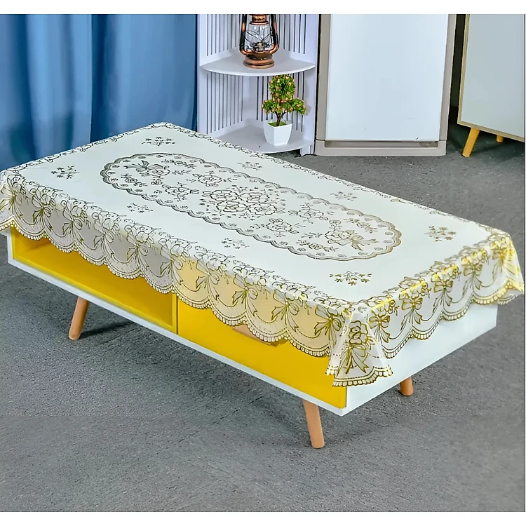 (Tặng 1 lót phần ăn 30x45 cm) Khăn Trải Bàn PAULEE WLG 751 hoa văn phủ nhũ vàng (90 x 150 cm), không thấm nước