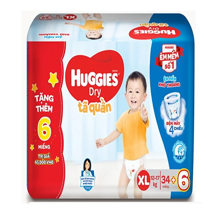 - Tã Quần Huggies Dry XL34 (34 Miếng) - Bao Bì Mớitự hào là nhãn hiệu duy nhất được chứng nhận y khoa giúp ngăn ngừa hăm tã.
