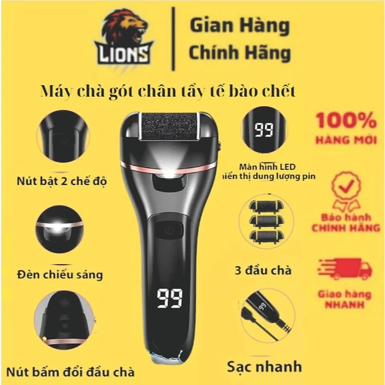 ( Tặng bộ phụ kiện 10 món) Máy chà máy tẩy da chết chân vết chai da khô toàn tự động đèn led, ,Mịn Màng Cho Từng Bước Đi Cao Cấp