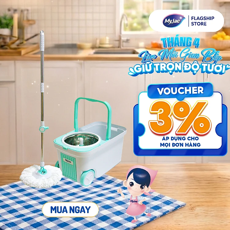 [Tặng Bông Lau] Bộ Lau Nhà MyJae Đài Loan Sợi Microfiber Xoay Siêu Tốc 360 Độ Thông Minh 129.5cm