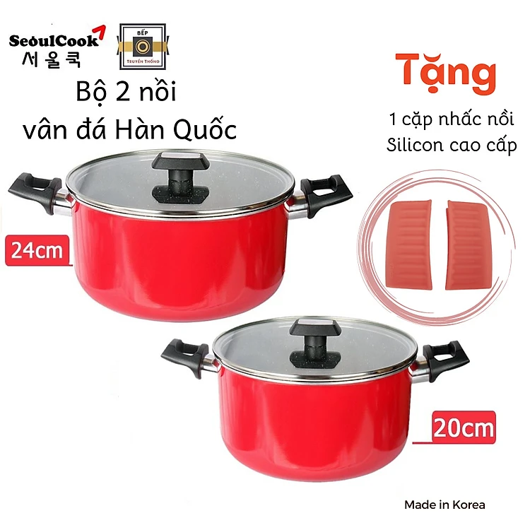 Tặng cặp nhấc nồi silicon- Bộ nồi chống dính vân đá cao cấp Hàn Quốc KimslCook hàng chính hãng