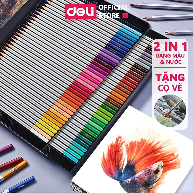 [Tặng Cọ] Bút Chì Màu Gốc Nước Dmast Cao Cấp Deli - Chì Màu Hộp Thiếc 24/36/48/72 Màu - Tô Vẽ Tranh Chuyên Nghiệp