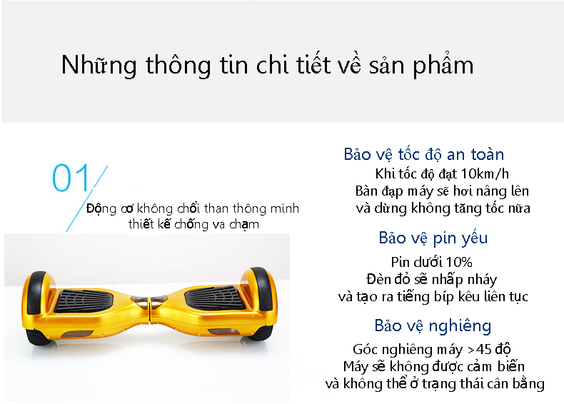 Thích hợp đi đường phẳng, hơi ghồ ghề Xe điện tự cân bằng bánh xe cỡ lớn khi không có người lái là phiên bản mới nhất với tính năng tự cân bằng giống chiếc Mini Robot Pro. Tính năng này giúp cho người lái nhất là những người mới chơi dễ dàng đứng lên xe mà không lo bị xe bị trượt về phía trước.