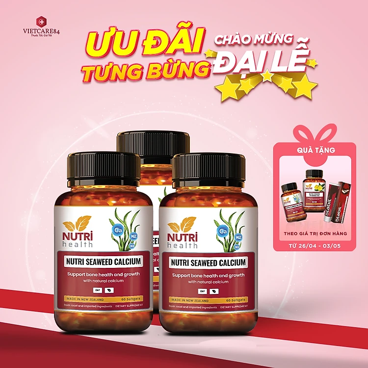 Bộ 3 Hộp Viên Uống Canxi hữu cơ nhập khẩu chính hãng Nutri Seaweed Calcium 60 viên