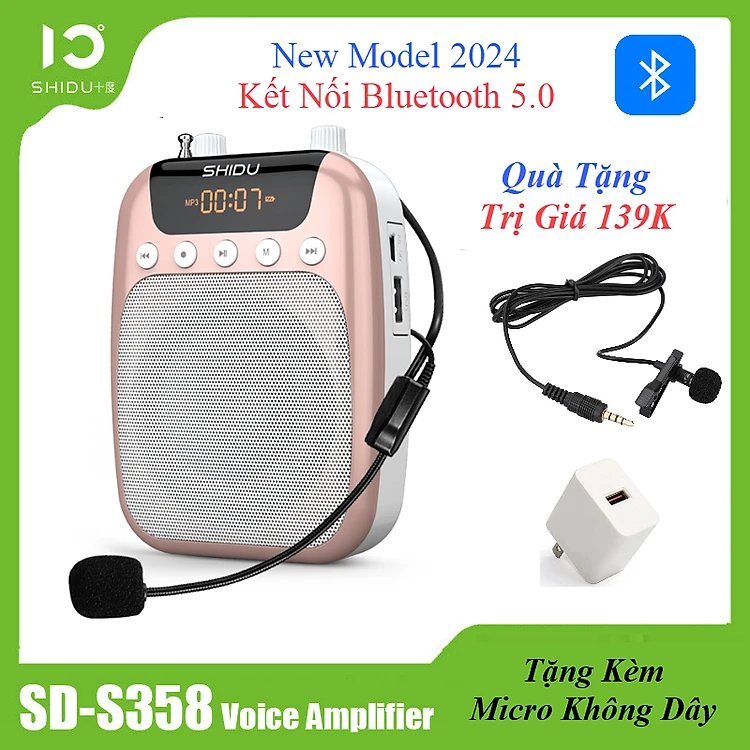 Tặng Kèm Micro Không Dây Trị Giá 139K - Loa Trợ Giảng Có Dây Shidu SD-S358 Công Suất Loa 10W Kết Nối Bluetooth,FM, Dung Lượng Pin 2500mAh Sử Dụng Lên Tới 15h. SHIDU S358 10W Wireless Mini Amplifier Meeting Guide Headset Micro Wireless - Hàng Chính Hãng