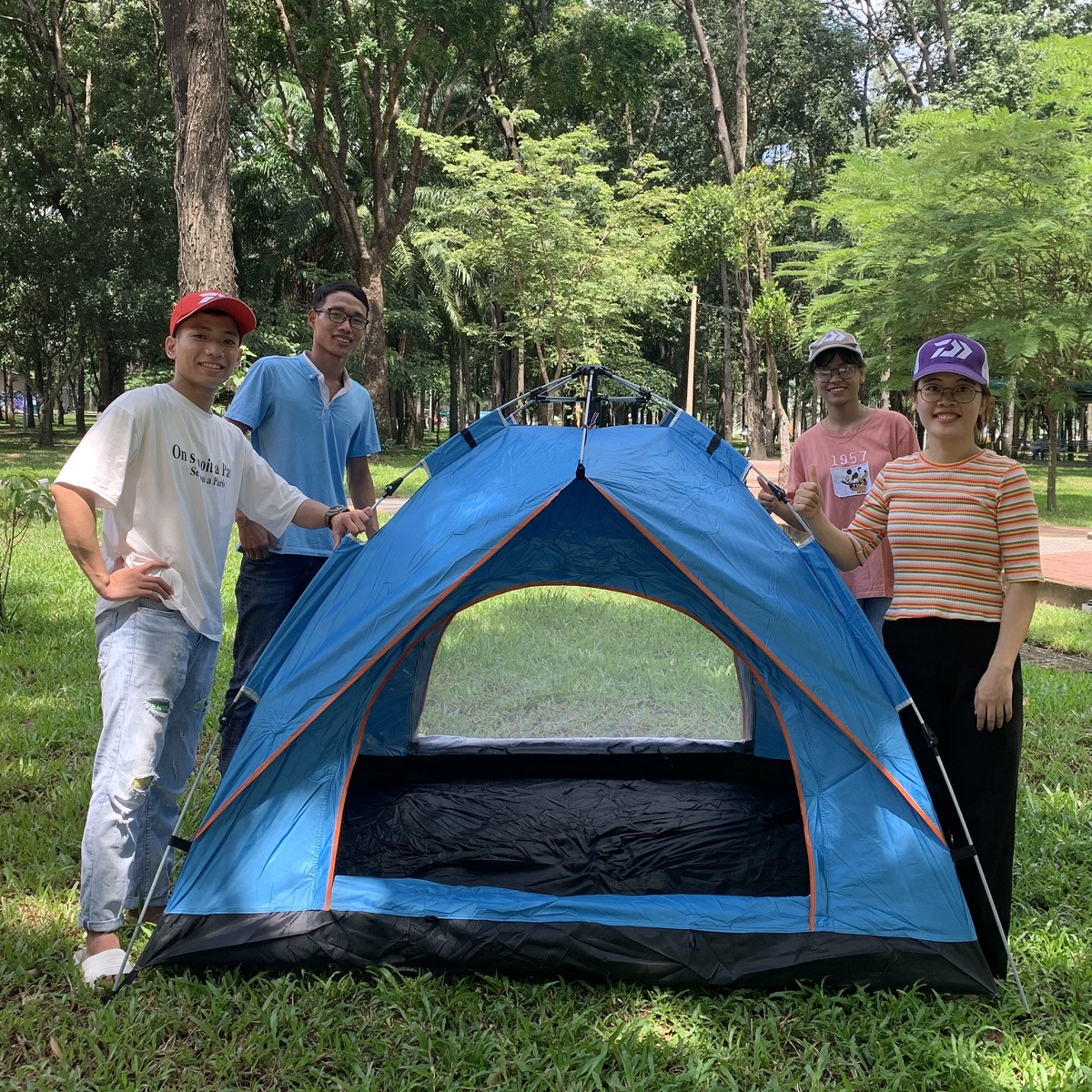 lều cắm trại tự bung là lều 1 lớp có 2 cửa với khả năng chống mưa chống nắng, chống côn trùng ruồi muỗi. Có thể lắp đặt trên nhiều địa hình mặt phẳng khác nhau như: cát, đất, nền đá, bê tông.