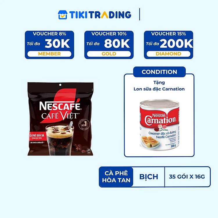 [Tặng 1 LON SỮA ĐẶC] Cà phê Hòa tan NESCAFÉ CAFÉ VIỆT 35 gói Vị Mạnh đặc trưng