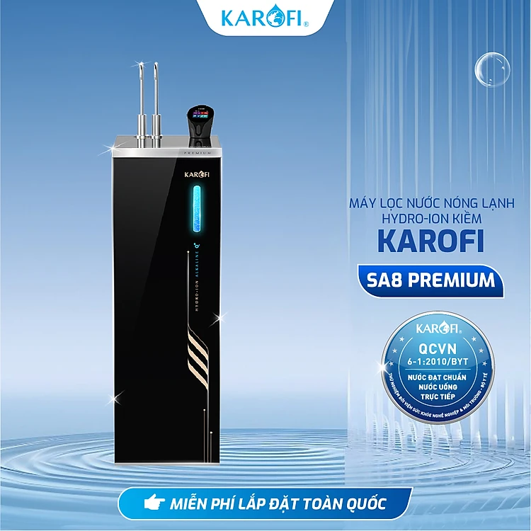 [TẶNG MÁY LỌC KHÔNG KHÍ KAP 317] Máy lọc nước Nóng Lạnh Hydro-ion Kiềm Karofi SA8 PREMIUM - 12+1 lõi - Hàng Chính Hãng