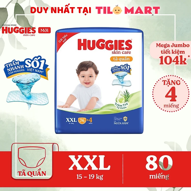 [Tặng 8M cho L96 hoặc 4M cho XL84/XXL76] Tã quần Huggies Skincare Mega Jumbo M106/L96+8/XL84+4/XXL76+4