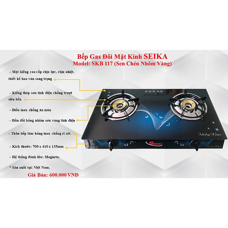 Tặng nước rửa chén Chie! 1.5L khi mua Bếp Gas Đôi Mặt Kính Seika Sen Nhôm SKB117 - Hàng Chính Hãng