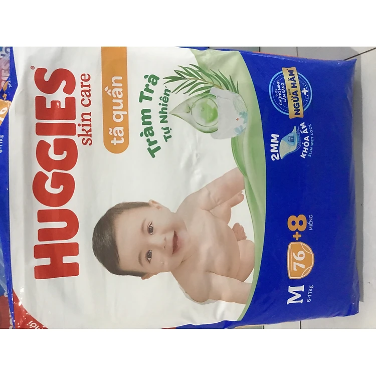 Tặng Thêm 8 Miếng- Tã quần Huggies M76 Skin Care Cho Bé Từ 6-11kg - Tràm trà tự nhiên ngừa hăm - Date luôn mới