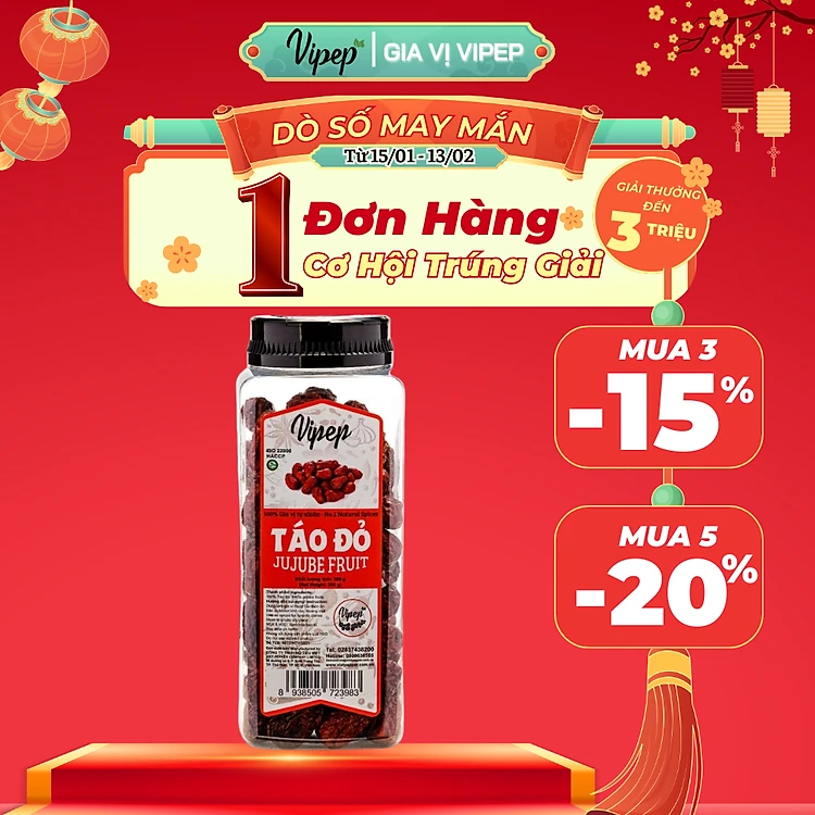 Táo Đỏ Tân Cương Tự Nhiên Vipep Hũ Nhựa 300g