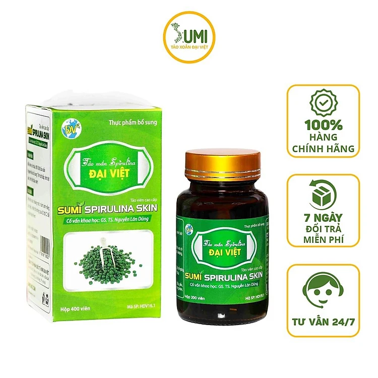 Tảo viên Sumi Spirulina Skin giúp ổn định đường huyết, giảm huyết áp - Hộp 200 viên