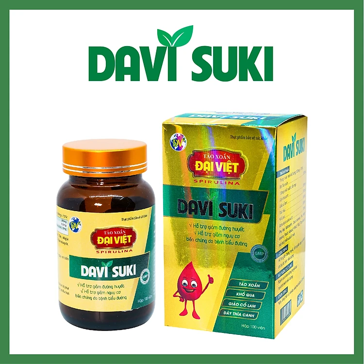Tảo xoắn Đại Việt Thực phẩm bảo vệ sức khỏe Davi Suki Viên uống Spirulina cao cấp hỗ trợ chuyển hóa đường DV29