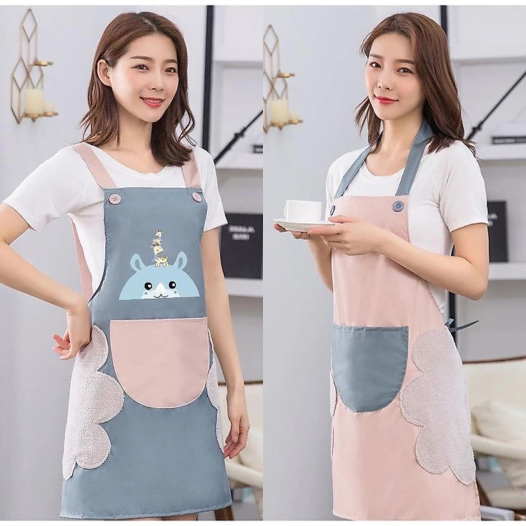 Tạp dề nấu ăn họa tiết có khăn lau tay bên hông ,chống thấm nước cao cấp tiện lợi cho nhà bếp thông minh