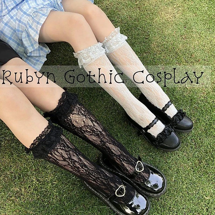Tất lolita bắp chân mang giày lolita phong cách cosplay siêu xinh ren01