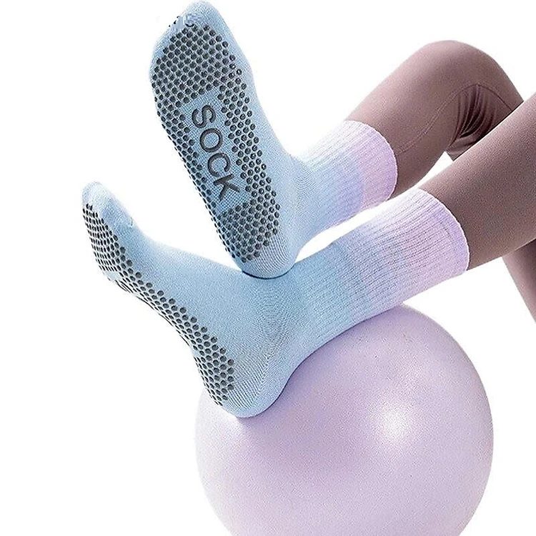 Tất / Vớ Chân Cao Cổ Nữ 15,9K Freesize Tập Yoga Pilates Len Co Giãn Đính Hạt Silicon Chống Trơn Trượt (Cao Cổ Kẻ Sọc)