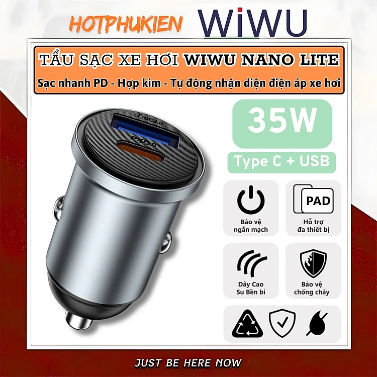 Tẩu củ sạc nhanh 35W cho xe hơi ô tô PD3.0 Type- C + USB-A QC3.0 hiệu WIWU Nano Lite cho iphone 17 16 15 14 13 12 iPad Vivo Oppo samsung cho Macbook - hàng nhập khẩu